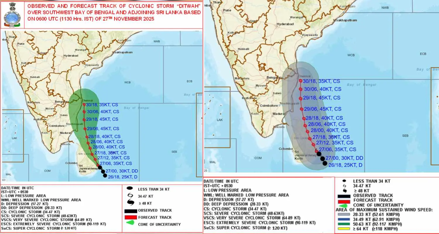 Originating near the Sri Lanka coast, the system strengthened from a low-pressure area into a deep depression before developing into Cyclone Ditwah. As it moves closer to the Indian shoreline, the threat level continues to rise, particularly for Tamil Nadu, Andhra Pradesh, and Puducherry.